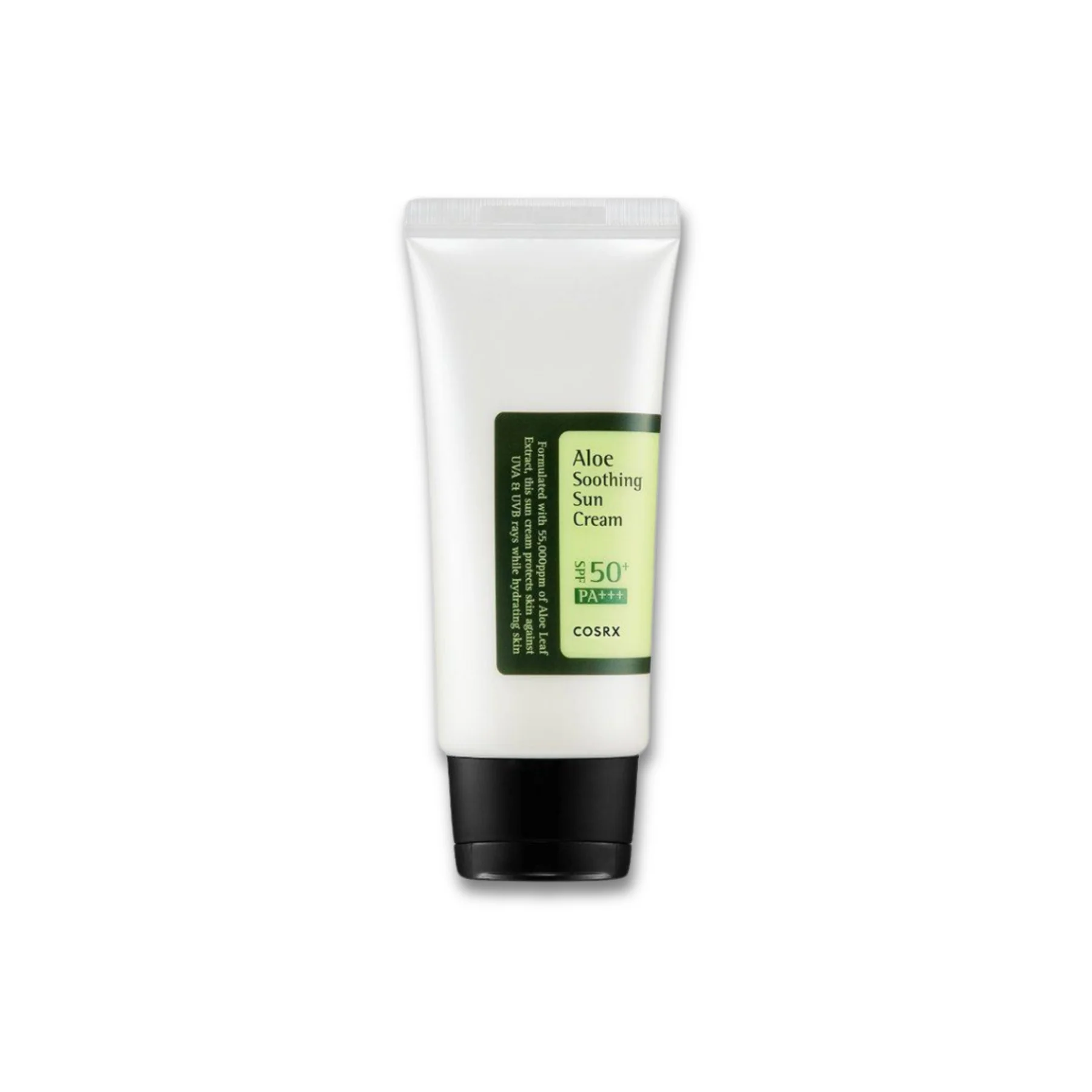 Cosrx Aloe Soothing Sun Cream SPF 50+ PA+++ 50ml is a lightweight, non-greasy sunscreen that feels like a moisturizer while offering high-level protection against harmful UVA and UVB rays. Infused with Aloe Arborescens Leaf Extract, this sun cream soothes, hydrates, and nourishes the skin, making it ideal for daily use on all skin types, including sensitive and acne-prone skin. Travel-friendly and easily layerable, it leaves no white cast and keeps your skin feeling refreshed, protected, and comfortable throughout the day.