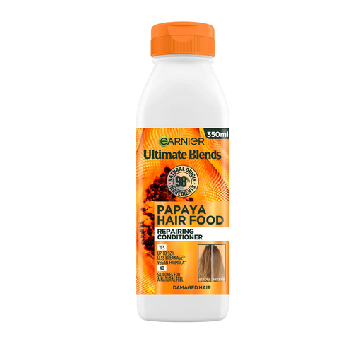 Repair and revive damaged hair with the Garnier Ultimate Blends Papaya Hair Food Conditioner. Specially crafted for damaged and brittle hair, this nourishing conditioner is enriched with papaya extract and coconut oil to restore strength, reduce split ends, and leave your hair silky smooth.