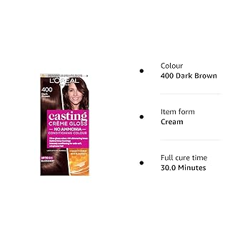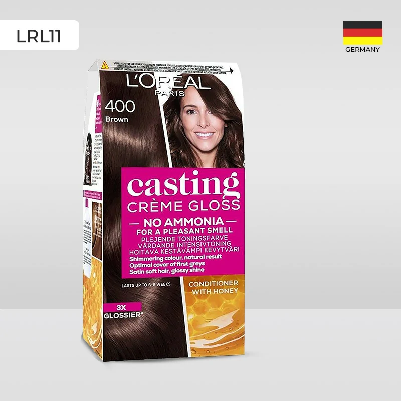 Discover rich, radiant color with L’Oréal Casting Cream Gloss Hair Color Braz Brown 400 – a semi-permanent, ammonia-free formula that nourishes while coloring. Perfect for covering greys or refreshing your natural shade, Braz Brown 400 delivers a warm, sun-kissed brown finish with glossy shine.