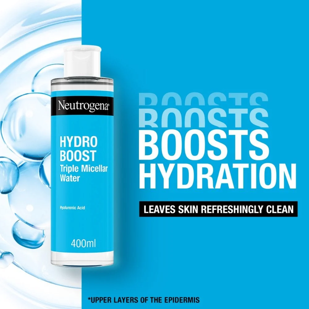 Experience deep cleansing and hydration with Neutrogena® Hydro Boost Micellar Water, our most advanced micellar water formula to date. Infused with Hyaluronic Acid and three distinct micellar molecules, this no-rinse cleanser effectively removes dirt, oil, and makeup—including stubborn waterproof mascara—while keeping your skin hydrated, refreshed, and soft.