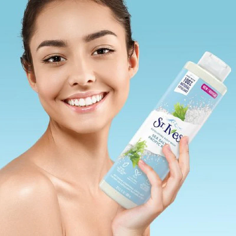 St. Ives Sea Salt & Kelp Exfoliating Body Wash is made with 100% natural sea salt, kelp extracts, and walnut shell powder to gently exfoliate and purify your skin. This refreshing body wash deeply cleanses while buffing away dead skin cells, leaving your skin smooth, revitalized, and glowing.