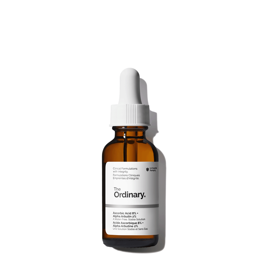 The Ordinary Vitamin C Ascorbic Acid 8% + Alpha Arbutin 2% (30ml) is a highly effective brightening serum designed to improve skin tone and reduce discoloration. This water-free formula combines two of the most powerful skin-enhancing ingredients: